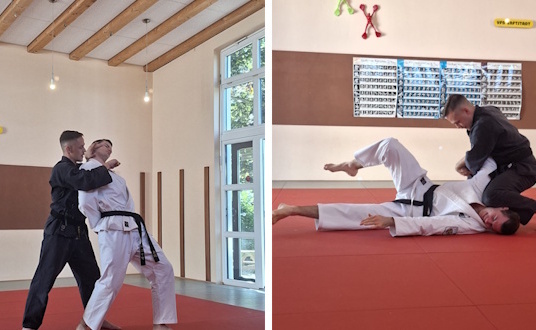Trotz wunderschönem Spätsommerwetter trafen sich am Sonntag, den 07.09.2025 motivierte Jiu Jitsuka im Zanshin Dojo des VFB Erftstadt zu einem Lehrgang zum Thema Waffenabwehren. Referent Pascal Laqua (3. Dan Jiu Jitsu) brachte die Teilnehmenden zunächst durch eine Aufwärmeinheit ins Schwitzen. Im Anschluss wurden einige Basics, wie beispielsweise der richtige Umgang mit dem Kurzstock trainiert. Danach wurden insgesamt ... Weiter