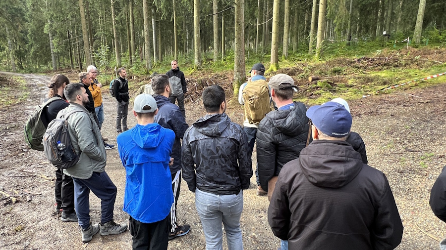 Die Eingriffe des Menschen sollen hier möglichst minimiert werden. Es ist ein Wunder, wie sich die Natur wieder ihre Lebensräume neu gestaltet. Was für das bloße Auge und den Wanderer auf dem Feldweg kaum sichtbar und begreifbar ist, konnte uns unser Waldführer mit seinem profunden Wissen und seiner jahrzehntelangen Erfahrung einordnen und erläutern. Wissen über das Einzelne ist hier oftmals nicht ausreichend, vielmehr zählt das Wissen um das Einzelne im Gesamten: So zählt auch die Beschaffenheit des Bodens und die Welt unterhalb der Oberfläche genauso wie die Welt in Sträuchern, Büschen und Bäumen. Alles wirkt zusammen. Stellenweise können Blätter und auf ihnen lebende Pilze Auskunft über den Zustand eines Biotops geben. Wir selbst bewegten uns auf den hierfür vorgegebenen Wegen und respektierten die Welt abseits der befestigten Strecken. Für den Budoka, der nach dem Weg sucht, ist das Verweilen auf einem gemeinsamen Weg nicht unüblich, vor allem ist es dann sinnvoll, wenn man dies aus Respekt vor dem Anderen macht. – Nach so vielen Eindrücken und (Höhen)Metern waren alle froh, dass wir kurzerhand das Alte Eifelhaus entdeckt hatten. Bei Kaffee und Kuchen hatten wir den Eindruck, dass wir in dem mehr als 350 Jahre alten Haus, welches uns beim Verweilen die eine oder andere "Story" erzählt hat, mehr als willkommen waren. Wie es beim BUJINDO Tradition ist, trafen sich alle immer wieder im Gruppenraum, wo man sich austauschte oder einfach miteinander ins Gespräch kam. Das war bei der Aussicht vom Gruppenraum in die parkähnlichen Anlagen der Jugendherberge auch kein Problem.