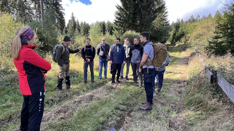 Beim Betrachten des Gleichen und Ähnlichen fiel auf, dass unsere Ruhr etwas erwachsener und größer ausgefallen ist, die Rur in Monschau sich aber märchenhaft durch die – so wird ihr nachgesagt – schönste Kleinstadt Deutschlands schlängelt. Märchenhaft ging es dann am Samstagmorgen in den Nationalpark Eifel, wo unser Waldführer schon auf uns wartete. Es war ein Glücksfall, dass wir in unserem Waldführer einen derart kompetenten, glaubwürdigen und freundlichen Menschen vorfanden, der uns für ein paar Stunden aus der Welt des Menschen in die Welt von Flora und Fauna entführte. In unmittelbarer Nähe von Straßen und Häusern befindet sich der Nationalpark Eifel, in dem der Mensch sich nur nach sehr strengen Regeln bewegen darf. Hier herrschen Bäume, Pflanzen und Pilze sowie große und kleine Tiere. Je mehr sich der Mensch aus allem herauszieht, desto mehr kann sich die Natur wieder (neu) entfalten.