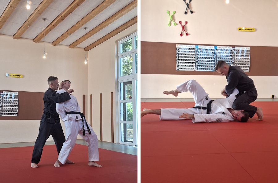 Zanshin Dojo des VFB Erftstadt zu einem Lehrgang zum Thema Waffenabwehren.
